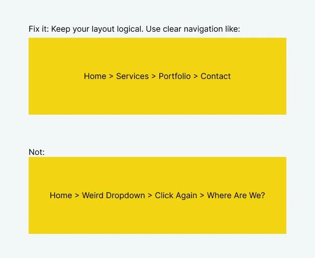 Fix it: Design with empathy. Clear call-to-actions (CTAs), simple layouts, and a sprinkle of personality go a long way.